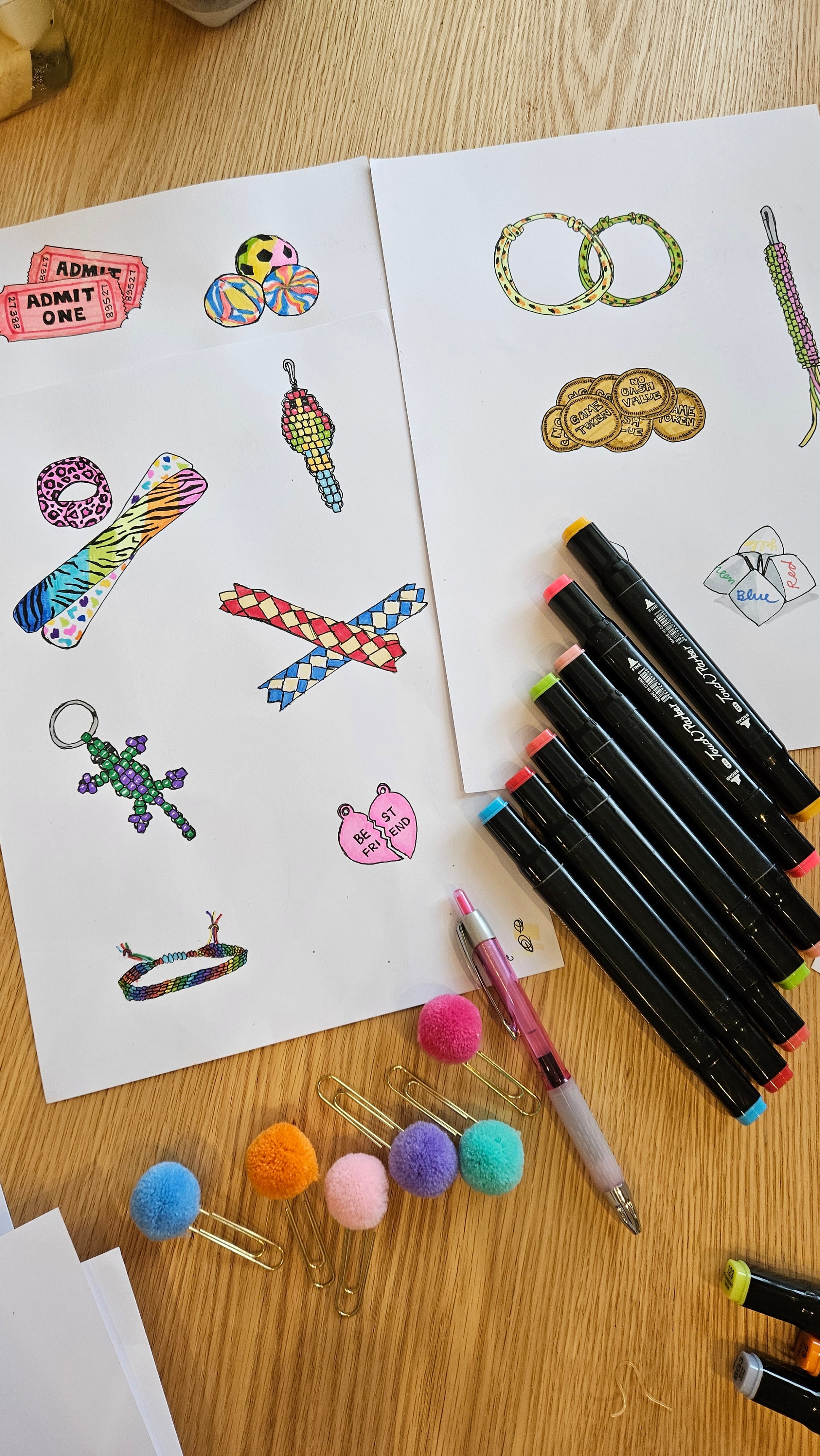 - Hand-drawn, one-of-a-kind sketches inspired by 90s nostalgia.