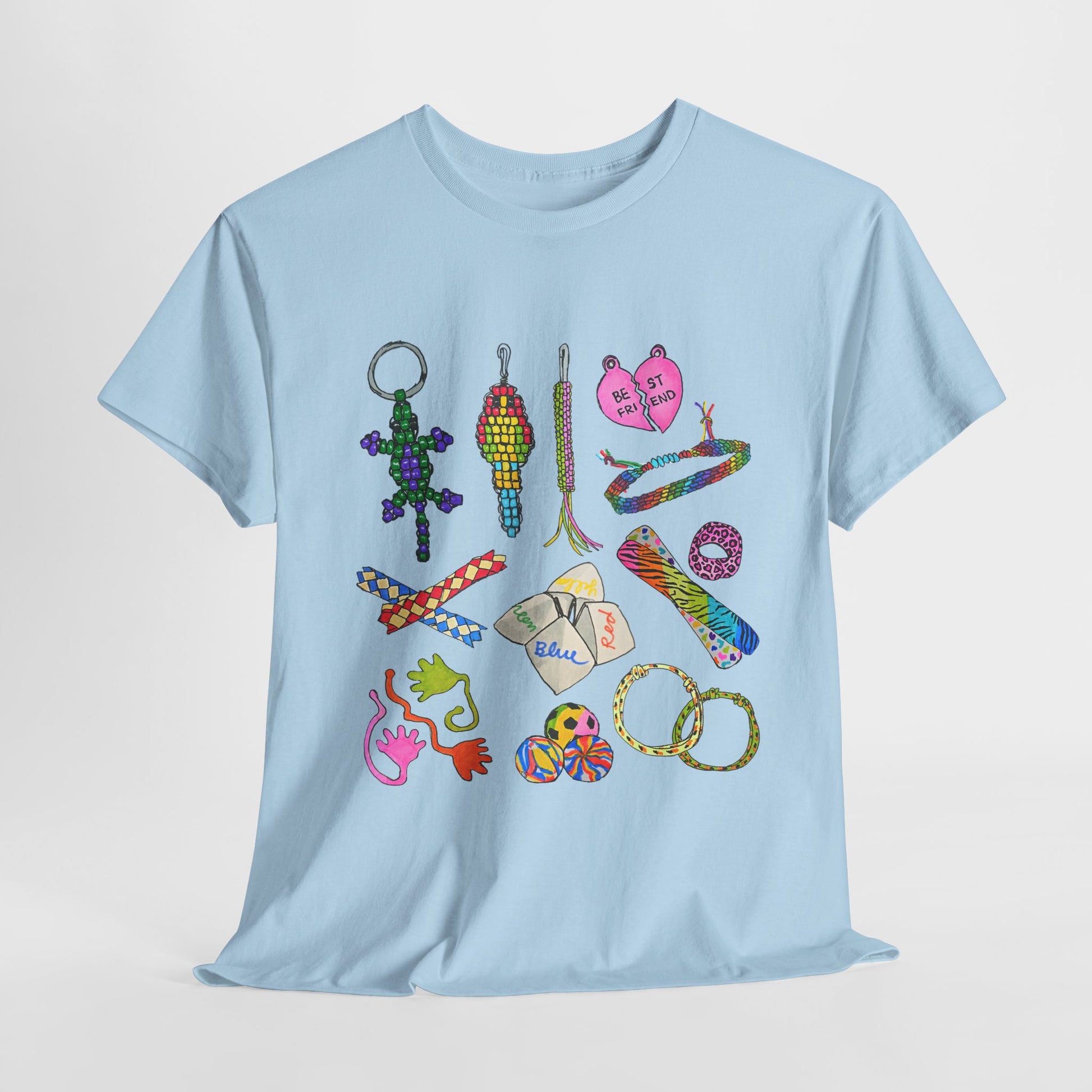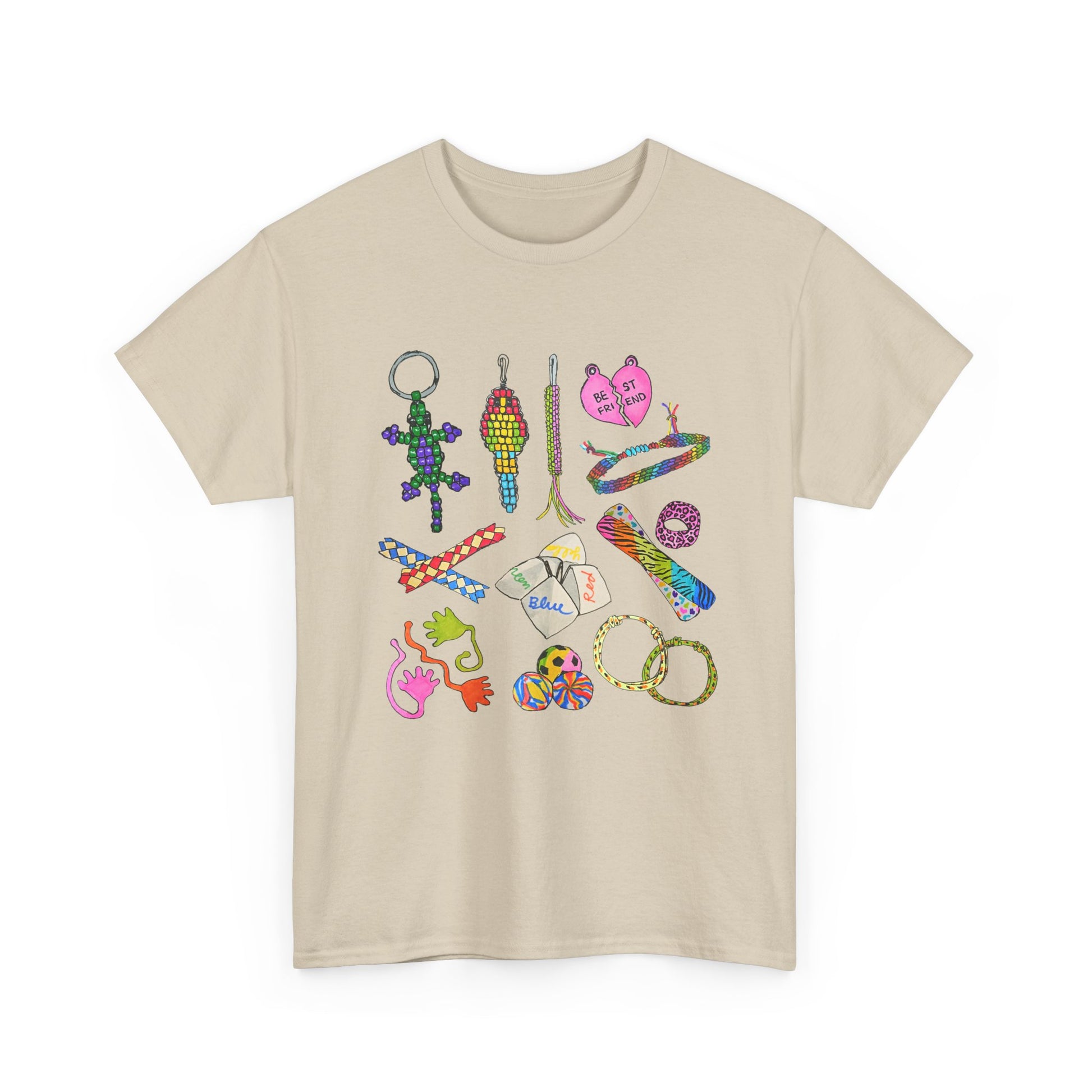 - Features iconic 90s throwback accessories: friendship necklaces, lanyards, beaded lizards, fortune tellers, and more!